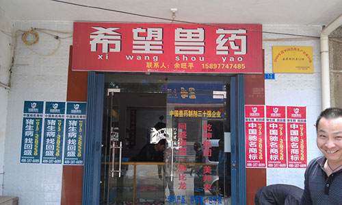 不知不覺一路貼到陳河鎮(zhèn)上,大家加快了進度,沒多久,古鎮(zhèn)主街道兩側的電線桿上就貼滿了回盛的品牌宣傳畫。我們驚喜的發(fā)現(xiàn),鎮(zhèn)上一家希望獸藥店,在店門口醒目的位置還打出了“回盛股份新華星動保連鎖獸藥應城銷量第一”的標語。老板談起銷售業(yè)績一臉歡喜,看得出來回盛旗下的產(chǎn)品在鎮(zhèn)上比較暢銷,市場占有率很高。