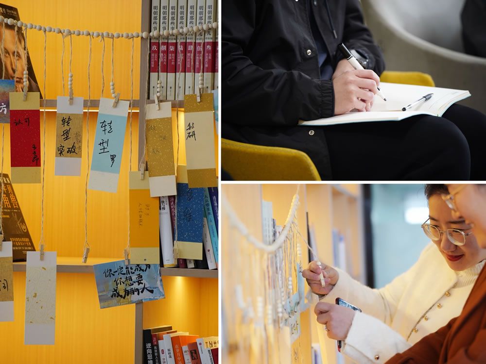 活動開場后,每位參與者以“2025年最想突破的職場關(guān)鍵詞”為引,寫下新年的成長期許。回盛書友們將關(guān)鍵詞書簽懸掛于讀書室主題墻,再以"可落地行動項+計劃閱讀書目"構(gòu)建年度閱讀企劃。